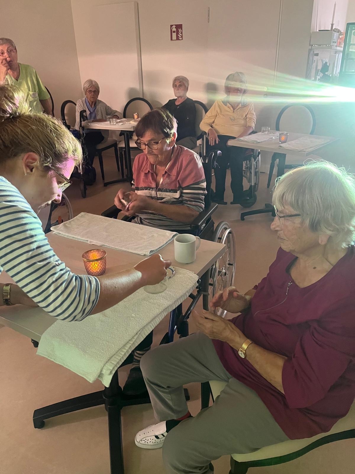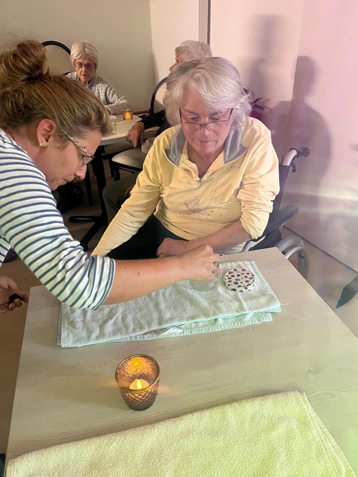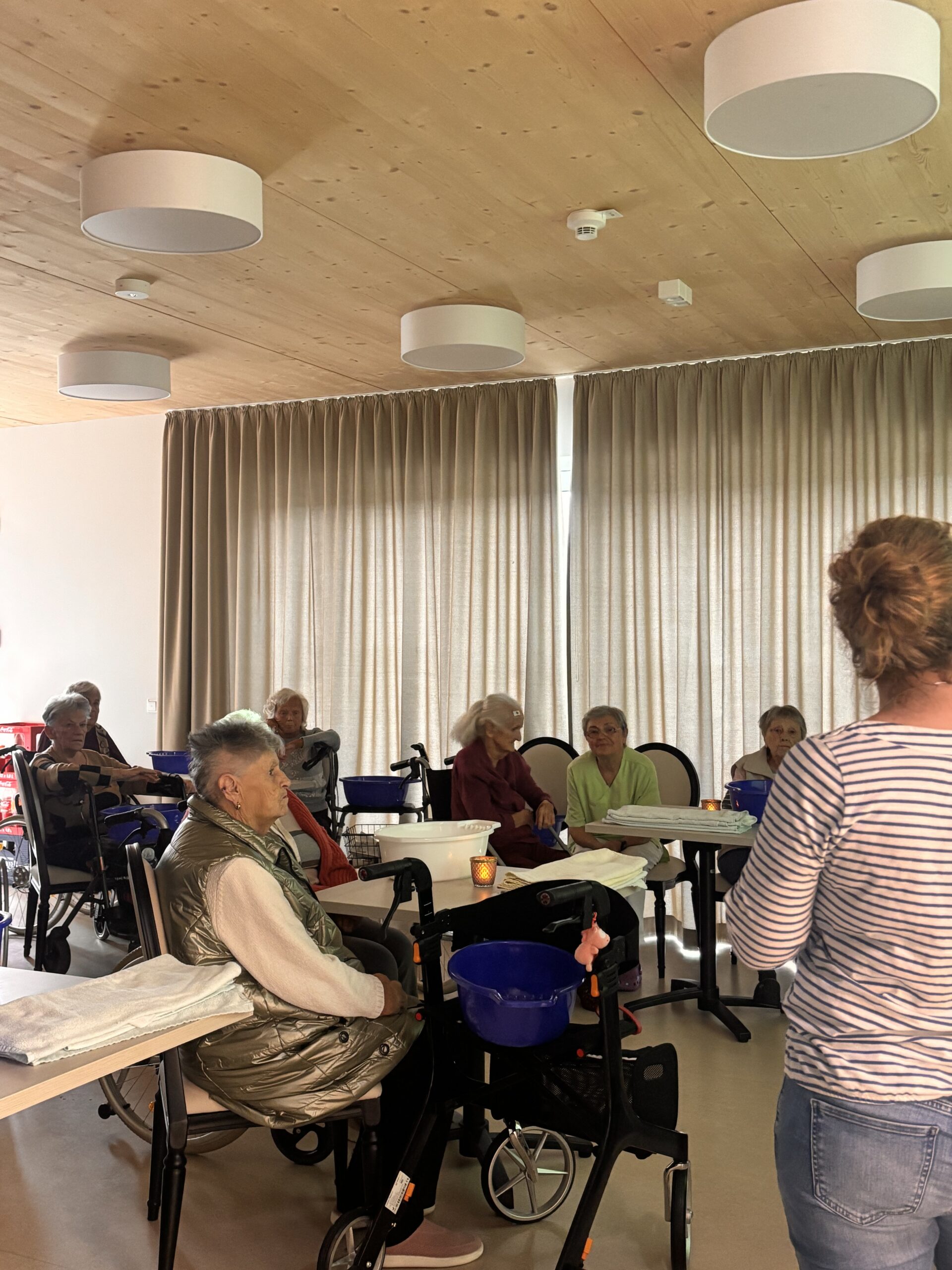 Bei unserem Aromanachmittag drehte sich alles um Entspannung und Sinneserlebnisse. Zu Beginn genossen unsere Bewohner ein wohltuendes Handbad mit herrlichen Düften. Anschließend stellten sie ihr eigenes, duftendes Badesalz her – mit viel Freude, Kreativität und Lächeln. Ein Nachmittag voller kleiner Auszeiten und Wohlfühlmomente. 💛